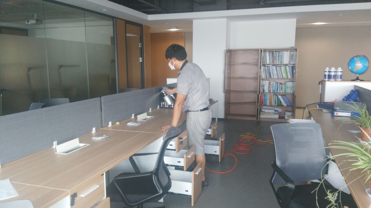工程介紹:該工程為杭州能源環境工程公司新建辦公區域,主要區域有辦公區、生活區、生產區,建筑主要以私生活、辦公為主要功能,建筑設計布局合理,功能設施齊全,建筑空間利用率用率較大,裝修施工時間較短,且所有家具、建材都是新產品,因裝修面積較大,建筑材料的使用量較大,且總類較多,因為空間使用量較大,所以裝飾物較多,有大量的辦公家具,且質量因工程量大,不容易做到全部安全合格,辦公家具放置擺放比較擁擠,且家具多為合成板材,墻面粘貼有色墻紙、墻布,粘貼時不可避免的膠水使用量就變得很大,也有部分皮革材料的家具,布藝飾品,很容易導致甲醛超標嚴重,辦公室工程因為預算和功能性,是比較容易甲醛超標的建筑群體,室內空氣甲醛超標量一般也比較嚴重,而甲醛又是一種無色有較強刺激性氣味的氣體,甲醛在工業生產過程中廣泛運用,也是人們在新房裝修,購買新家具、新車時最為忌諱的一種物質,室內或車內甲醛濃度的高低,直接影響著人們的生命健康安全,如果不注意,一旦吸入,會對人身體造成很到的危害。管理人員為了給工作人員提供一個良好的環境,避免污濁空氣對人們的侵害。請我公司對污染物進行全方位的處理。